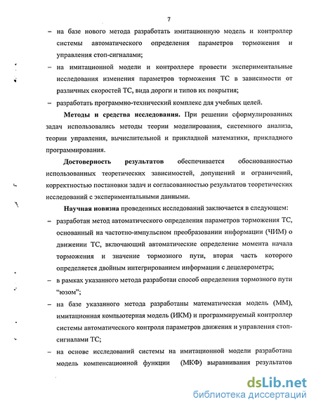 Цель диссертационной работы: Повышение точности и быстродействия средств контроля параметров торможения ТС, обеспечивающих их безопасность.