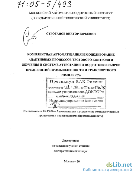 Предметом исследования являются методы и модели формализованного описания процессов обучения и тестового контроля в системе аттестации и подготовки кадров предприятий промышленности и транспортного комплекса.
