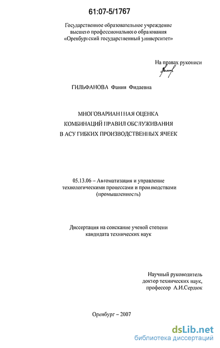 Вместе с тем в диссертации разработано программное средство и методика его использования, представляющие собой новый метод поддержки инженерных решений, позволяющий для конкретных параметров оборудования и изготавливаемых деталей синтезировать по комплексу критериев оптимальные алгоритмы АСУ. Можно сделать вывод, что тем самым достигнута цель работы. 1. Установлено, что 98% ситуаций, рассмотренных в вычислительных экспериментах, максимальная средняя загрузка кщя"10 обеспечивается при использовании комбинаций правил FIF02, FIF03, LWKR2 и LWKR3. Наибольшие потери от использования других комбинаций правил составляют, в среднем, 6-7 %. При этом величина потерь уменьшается с увеличением средней трудоемкости изделий. Данные правила с наибольшей вероятностью в 69% обеспечивают и наиболее стабильную работу оборудования по критерию загрузки (минимальное рассеяние кщя). Потери кШя при использования других комбинаций правил резко увеличиваются с увеличением вместимости приста-ночных накопителей: при 10 позициях в пристаночном накопителе составляют 9%. В относительных единицах это соответствует увеличению noj-я рассеяния kt пя примерно на 70%. 2. Комбинации правил FIF02 и FIF03 оптимальны по критерию средней производительности с максимально возможной вероятностью в 95%. Наиболее высокая стабильность производительности для правил FIF02 и FIF03 составляет 56%. Потери стабильности производительности из-за неоптимального применения FIF02 и FIF03 составляют около 6% и достигают 25% при увеличении длительности цикла безлюдной работы ГПЯ до 2-х смен (960 мин). 3. В 90% ситуаций оптимальным по критерию L0mod является использование комбинации правил LWKR2. При этом наибольшая стабильность процесса функционирования ГПЯ по данному показателю (наименьшее поле рассеяния о)) оценивается вероятностью в 50% . Такую же вероятность по стабильности L0 имеют комбинации FIF02 и FIF03. Риск использования данных комбинаций в области оптимальности LWKR2 составляет 3%, потери из-за увеличения прироста срока окупаемости составляют менее 1 %. 4. Таким образом, с вероятностью свыше 90% можно прогнозировать оптимальность использования при проектировании АСУ ГІ \Я в качестве основного правила обслуживания - «с первой заявки в очереди», в качестве дополнительных - правил по минимальному времени транспортной операции или по минимальному расстоянию от ячейки склада. Основные результаты работы Совокупность полученных результатов позволяет сделать вывод о том, что в работе получено новое решение актуальной научной задачи оптимизации выбора правил обслуживания при проектировании автоматизированных систем управления гибких производственных ячеек. 1. Актуальность проблемы выбора правил обслуживания в АСУ ГПЯ доказывается отсутствием общего решения задачи, ее соответствием концепции ИПИ (CALS) технологий, фактами создания на предприятиях региона компьютерно управляемых станков и обоснованным прогнозом дальнейшей интеграции их в компьютерно управляемые комплексы оборудования. 2. Обосновано использование метода циклограмм при формализованном описании производственного процесса ГПЯ, что позволило учесть в модели конкретные технические параметры оборудования, данные об изделиях, составе сменного задания и исходном расположении заготовок. Дальнейшее развитие метода циклограмм в части формального описан