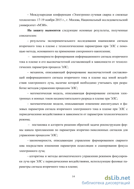 Поддержка работы. Диссертационная работа выполнялась в Пермском национальном исследовательском политехническом университете (ПНИПУ). Часть проведенных исследований выполнялась в рамках грантов РФФИ, а также в рамках совместного проекта с Институтом электроники Болгарской академии наук при поддержке, в том числе финансовой, со стороны Минобрнауки России в рамках базовой части и Министерства образования Пермского края. Некоторые результаты получены при выполнении работ по договорам с российскими предприятиями. В рамках программы «Старт 13 Н4» созданы системы управления проплавлением и режимом фокусировки электронного луча при ЭЛС.