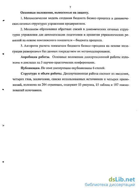 Цель работы и задачи исследования. Целью диссертационной работы является повышение эффективности управления промышленным предприятием за счет создания механизма оперативного управления бизнес-процессами по отклонению его фактических показателей от запланированного бюджета.