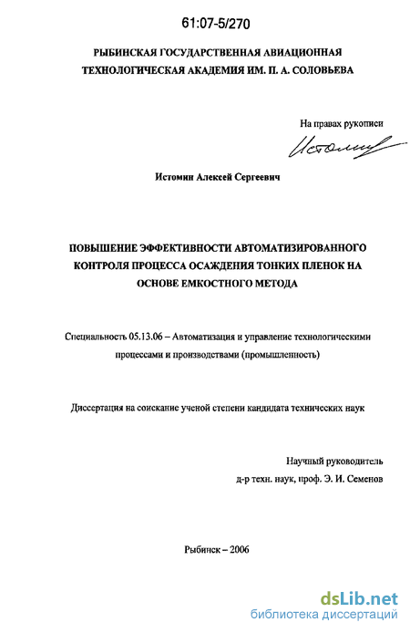 Цель работы - Повышение эффективности автоматизированного контроля процесса осаждения тонких пленок на основе емкостного метода.