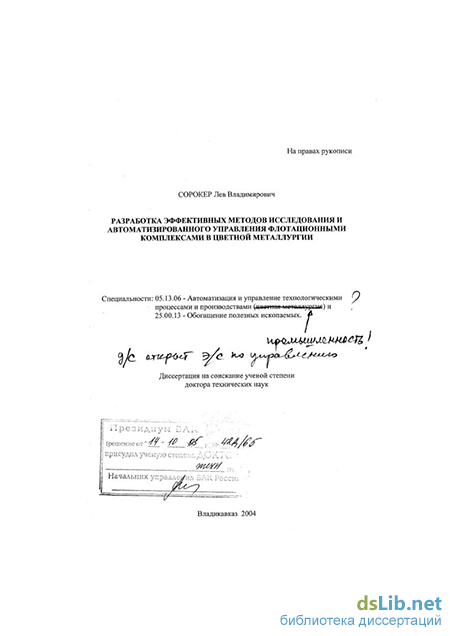 Апробация работы Положения диссертационной работы доложены автором и обсуждены на Всесоюзном совещании по планированию эксперимента (г. Москва, 1968г.), на Всесоюзных научно-технических конференциях по автоматизации производственных процессов на предприятиях цветной металлургии (г. Орджоникидзе, 1969 - 1984г.г.), на первой Всесоюзной конференции по применению ЭВМ в металлургии (г. Москва, 1973г.), на советско-финском симпозиуме по автоматизации в обогащении (г. Хельсинки, 1973г.), на Всесоюзном совещании по контролю и технологической оптимизации процесса флотации (г. Свердловск, 1978г.), на Всесоюзном научно-техническом семинаре «Опыт разработки, перспективы развития и внедрения АСУ горно-обогатительными. комбинатами » (г. Киев, 1979г.), на Всесоюзном совещании по безотходной технологии переработки полезных ископаемых (г. Зеленоград, 1979г.), на совещании специалистов стран-членов СЭВ по рассмотрению технических проектов совместно разрабатываемых средств и систем автоматизации (г. Москва, 1983 г.), на Всесоюзном совещании по перспективам дальнейшего развития Тырныаузского вольфрамо-молибденового комбината (г. Тырныауз, 1984г.), на Всесоюзных совещаниях по основным направлениям научно-исследовательских и опытных работ по использованию ионного состава в системах контроля и регулирования флотационного процесса (г. Орджоникидзе, 1980г., г. Москва, 1982г., г. Алма-Ата, 1983г., г. Москва, 1985г., г. Орджоникидзе, 1986г.), на 11-й международной конференции по автоматизации в горном деле ICAMC-92 (г. Екатеринбург, 1992г.), на I, II, III и IV конгрессах обогатителей стран СНГ (г. Москва, 1997, 1999, 2001, 2003 г.г.), на ежегодных научно-технических конференциях СКГМИ (СКГТУ) 1968-2004г.