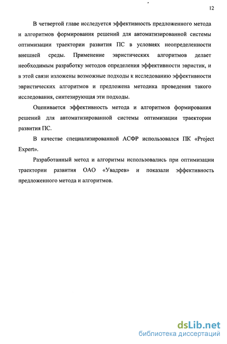 • практическое применение разработанных методов формирования решений для автоматизированной системы оптимизации траектории развития ПС в условиях неопределенности внешней среды. Структура и объем работы.