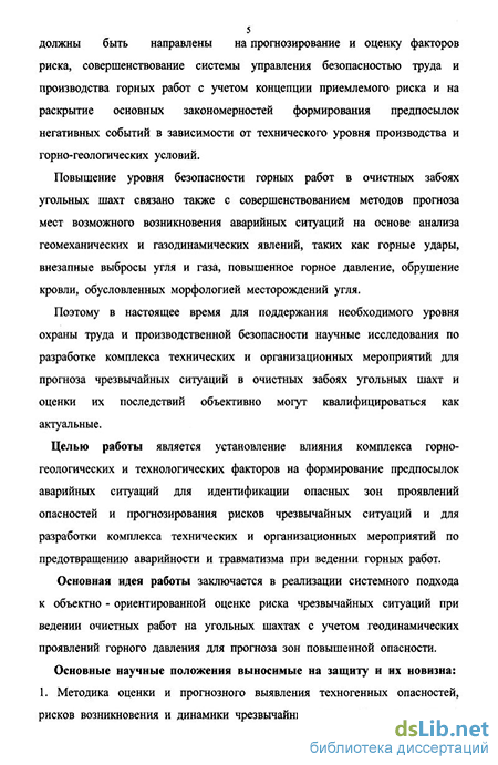 совершенствование системы управления безопасностью труда и производства горных работ с учетом концепции приемлемого риска и на раскрытие основных закономерностей формирования предпосылок негативных событий в зависимости от технического уровня производства и горно-геологических условий