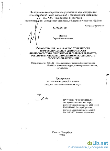 Вместе с тем, проблема самосознания личного состава силовых ведомств, обеспечивающих национальную безопасность РФ, относится к одной из мало разработанных в психологической науке Практически отсутствуют данные об особенностях самосознания, его взаимосвязи с мотивационной сферой и успешностью профессиональной деятельности сотрудников силовых ведомств