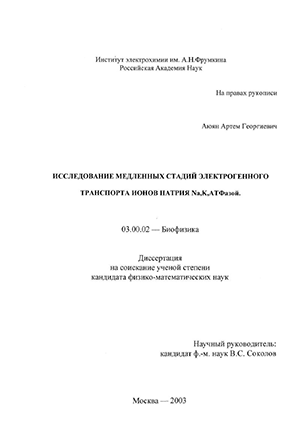 Аюян Артем Георгиевич. Исследование медленных стадий электрогенного транспорта ионов натрия Na,K,ATФазой : диссертация ... кандидата физико-математических наук : 03.00.02.- Москва, 2003.- 90 с.: ил. РГБ ОД, 61 03-1/1003-9