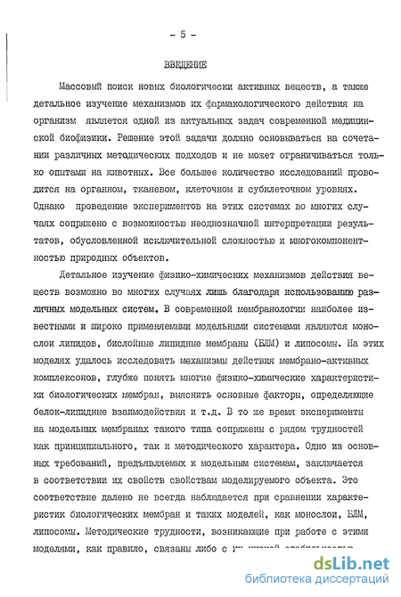 Массовый поиск новых биологически активных веществ, а также детальное изучение механизмов их фармакологического действия на организм, является одной из актуальных задач современной медицинской биофизики. Решение этой задачи должно основываться на сочетании различных методических подходов и не может ограничиваться только опытами на животных. Все большее количество исследований проводится на органном, тканевом, клеточном и субклеточном уровнях. Однако проведение экспериментов на этих системах во многих случаях сопряжено с возможностью неоднозначной интерпретации результатов, обусловленной исключительной сложностью и многокомпонент-ностью природных объектов.