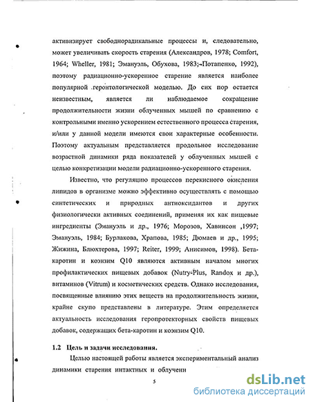 Известно, что регуляцию процессов перекисного окисления липидов в организме можно эффективно осуществлять с помощью синтетических и природных антиоксидантов и других физиологически активных соединений, применяя их как пищевые ингредиенты (Эмануэль и др., 1976; Эмануэль, 1984; Бурлакова, Храпова, 1985; Дюмаев и др., 1995; Жижина, Блюхтерова, 1997; Морозов, Хавинсон ,1997; Анисимов, 1998; Reiter, 1999). Бета-каротин и коэнзим Q10 являются активным началом многих профилактических пищевых добавок (Nutry-Plus, Randox и др.), витаминов (Vitram) и косметических средств. Однако исследования, посвященные влиянию этих веществ на продолжительность жизни, крайне скупо представлены в литературе. Этим определяется актуальность исследования геропротекторных свойств пищевых добавок, содержащих бета-каротин и коэнзим Q10.
