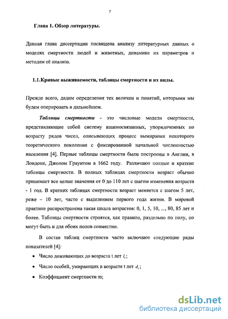 1.1 Кривые выживаемости, таблицы смертности и их виды 7
