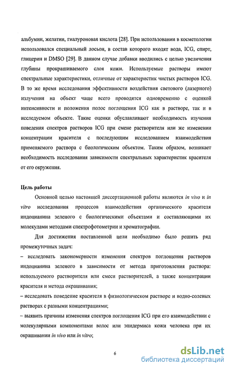 Основной целью настоящей диссертационной работы являются in vivo и in vitro исследования процессов взаимодействия органического красителя индоцианина зеленого с биологическими объектами и составляющими их молекулами методами спектрофотометрии и хроматографии.