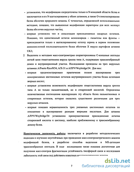 - Изучение ацилирования цистеинов С-концевой области гемагглютинина вируса гриппа штаммов A/Puerto Rico/8/34, А/Х-31 и A/FPV/Weybridge/34 жирными кислотами