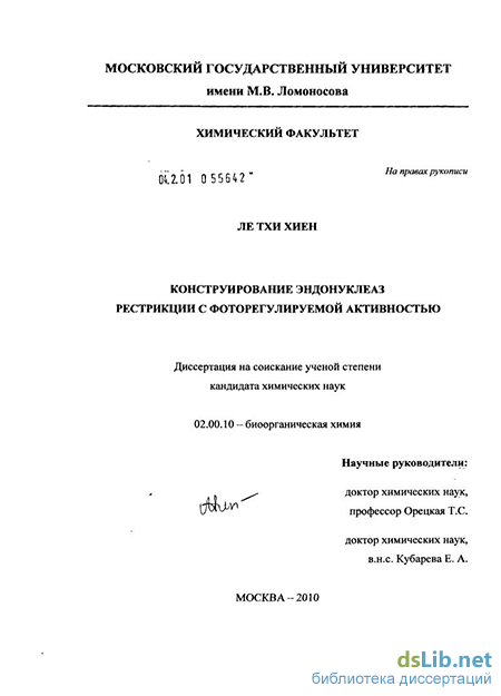 В «хирургии» генома в качестве молекулярных инструментов для расщепления ДНК вблизи дефектного гена находят применение различные ферменты, в том числе эндонуклеазы рестрикции (ЭР), нуклеазы, содержащие структурный модуль «цинковые пальцы», и эндонуклеазы генной конверсии. Специфическое расщепление ДНК в нужном участке является ключевым требованием этого метода. Для точечного гидролиза ДНК в геноме человека, содержащем приблизительно 3 миллиарда пар нуклеотидов, используют мегануклеазы - сиквенс-специфические эндонуклеазы с протяженным участком узнавания. Однако в процессе поиска целевого субстрата ферменты, направлено гидролизующие ДНК, могут проявлять неспецифическую активность. Поэтому актуальной задачей является регулирование их действия. Процесс нежелательного расщепления ДНК можно попытаться минимизировать, «включая» и «выключая» активность фермента в определенные моменты времени посредством внешних воздействий, таких как свет. Для управления активностью белков посредством света все большее применение находят «фотопереключатели» -производные азобензола {Banghart et al, 2004; Nakayama et al, 2004; Volgrafet al, 2006; Harvey et al, 2008). Цис-транс-тзомертзацря азобензола протекает быстро под действием света с длиной волны более 300 нм и, следовательно, позволяет активировать/инактивировать белки in vivo. В настоящей работе в качестве объектов для разработки подходов к регулированию ферментативной активности использованы гомодимерные эндонуклеазы рестрикции П-го типа SsoII (R.SsoII) и PvuII (R.PvuII).