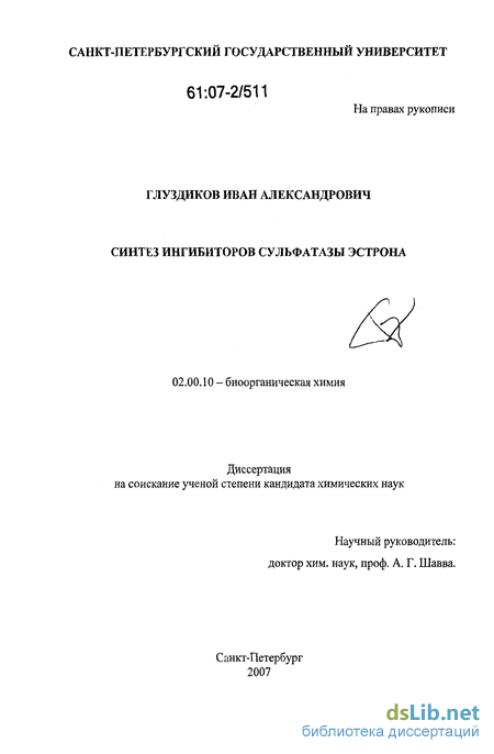 1. Синтезировать 3-О-сульфаматы 8а-, -гомо-8а-, 1)-гомо-2?-нор-8а- и 6-окса- -гомо-8а-эстра-1,3,5(10)-триен-17(17а)-онов, а также производные )-гомоэквиленина, и исследовать их ингибирующую активность по отношению к сульфатазе эстрона. 2. Разработать способ синтеза производных D-гомоэквиленина с различным сочленением колец и изучить их строение методами спектроскопии ЯМР и рентгеноструктурного анализа. 3. Предложить критерии определения характера сочленения колец в аналогах -гомоэквиленина на основании данных спектроскопии ЯМР. Научная новизна. Синтезированы новые 3- 3-сульфаматы 8а-, D-гомо-8а-, -гомо-і?-нор-8а- и 6-окса-/)-гомо-8а-аналогов стероидных эстрогенов, получены данные о их ингибирующей активности по отношению к сульфатазе эстрона. Изучено стерическое направление реакции «торговских» D-гомоэстрапентаенов, содержащих метильные группы при С-16, с никелем Ренея. Предложен способ синтеза аналогов D-гомоэквиленина с различным сочленением колец. Проведено полное отнесение сигналов в спектрах ЯМР Н и 13С -гомоаналогов эквиленина и выявлены критерии, позволяющие легко определять характер сочленения колец подобных соединений методом ЯМР-спектроскопии. Исследованы особенности строения некоторых аналогов /)-гомо-13а-эквиленина в растворе и кристалле. Практическая ценность. Синтезированные аналоги стероидных гормонов расширяют базу данных по связи структура - активность ингибиторов сульфатазы эстрона. Получены соединения, ингибирующие гидролиз сульфата эстрона в опытах на клетках хориокарциномы линии JEG-3. Учитывая, что исходные вещества для синтеза целевых ингибиторов обладают пониженной утеротропной активностью, такие препараты перспективны при поиске средств для лечения и профилактики РМЖ.