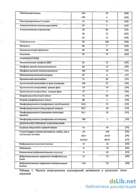 Следует отметить, что не всегда наблюдается корреляция активности теломеразы и = длины теломер.. Например, при лейкемии; зависимость между длиной- теломер И* активностью-теломеразы отсутствует-.[23];. .