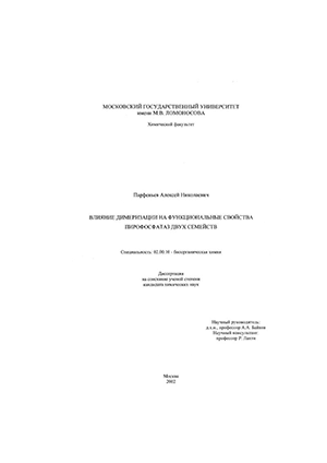Парфеньев Алексей Николаевич. Влияние димеризации на функциональные свойства пирофосфатаз двух семейств : диссертация ... кандидата химических наук : 02.00.10.- Москва, 2002.- 184 с.: ил. РГБ ОД, 61 03-2/137-9