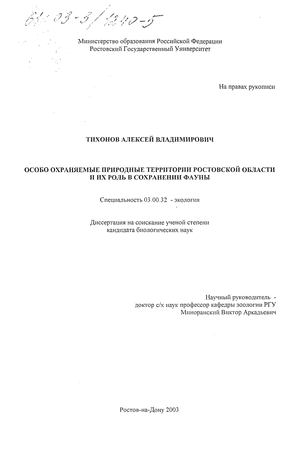 Научная новизна. Выполнен анализ современного состояния особо охраняемых природных территорий Ростовской области. Проведен первичный кадастр герпетобионтов основных ландшафтов заповедника Ростовский, исследована роль малых дорог в формировании фауны герпетобионтов плакорных степей, описан ряд новых ключевых орнитологических территорий. Выполнена оценка госзаказников в охране неохотничьих краснокнижных видов животных, а так же в сохранении и возобновлении естественного комплекса биоразнообразия области. Проведены работы по составлению кадастра особо охраняемых территорий Ростовской области. Произведена оценка областной экологической сети, выработаны концепция экосети в приложении к региону, и рекомендации по дальнейшему развитию структуры системы.