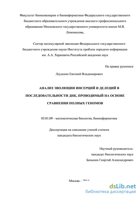 Публикации и апробация работы. По материалам диссертации опубликовано 3 статьи в международных рецензируемых научных журналах. Результаты работы были представлены на международных конференциях MCCMB’11, SMBE'12, российских конференциях ИТИС’10, ИТИС’11. Апробация работы проведена 19 сентября 2013 г. на совместном семинаре лаборатории эволюционной геномики Факультета биоинженерии и биоинформатики МГУ им. М.В.Ломоносова и сектора молекулярной эволюции Института проблем передачи информации РАН им. А.А. Харкевича.