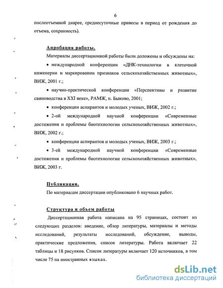 Целью диссертационной работы явилось исследование полиморфизма гена рецептора Е. coli А18 (ECR F18/FUT1) у свиней различных пород и установление связи между аллельными вариантами гена и хозяйственно-полезными признаками.