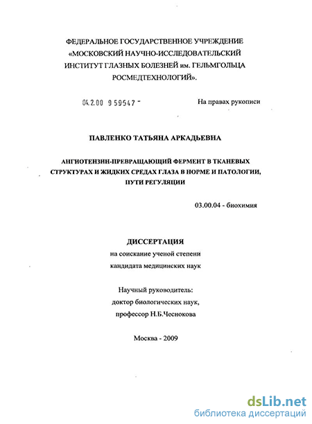 Помимо циркуляторной РАС в различных тканях выявлено наличие локальных РАС. Так, в тканевых структурах и жидких средах глаза обнаружены многие компоненты РАС, причем в концентрациях, намного превосходящих те, которые можно было бы объяснить примесью крови, и показано, что в глазу происходит их местный синтез (Savaskan Е. et al, 2004; Luhtala S. et al, 2009). Имеются сведения об участии локальной РАС глаза в развитии диабетических изменений в глазу, регуляции внутриглазного давления, в развитии глазных проявлений при саркоидозе и других патологических процессах (Кост О.А. и соавт., 1996; Бенделик Е.К. и соавт., 1999; Чеснокова Н.Б. и соавт., 2000; Shah G.B. et al., 2000; .Нероев В.В. и соавт., 2005; Kim JH. et al, 2009). Вероятно, локальная регуляция активности АПФ может быть использована в терапевтических целях.