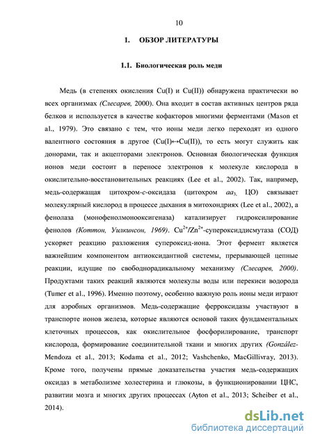 1.4. Животные модели, используемые для изучения метаболизма меди 33