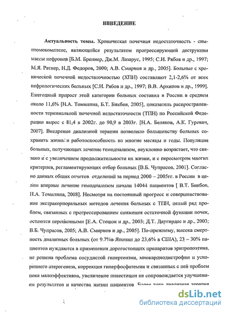 Внедрение результатов исследования в практику. Основные положения и выводы диссертационной работы внедрены в практику работы Центра амбулаторного диализа Республиканского кардиологического диспансера Башкортостана (г.Уфа ), в учебный процесс кафедры факультетской терапии и кафедры биологической и биоорганической химии Государственного образовательного учреждения высшего профессионального образования "Башкирский государственный медицинский университет Министерства здравоохранения и социального развития".
