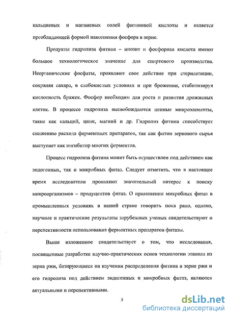 Выше изложенное свидетельствует о том, что исследования, посвященные разработке научных основ технологии этанола из зерна ржи, базирующейся на изучении данных о распределении фитина в зерне ржи и его гидролиза под действием эндогенных и микробных фитаз, являются актуальными и перспективными.