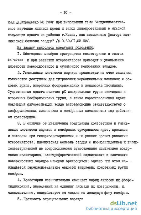 В связи с этим, мембраны эритроцитов в условиях гиперхо-лестеринемии, атеросклероза и ишемической болезни сердца с различными типами нарушения липидного обмена могут служить удобным объектом для исследования структурно-функциональных изменений цри этих патологиях, связанных с воздействием холестерина.