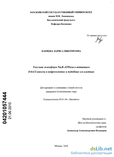 Целью данной работы явилась оценка участия разных изоформ а-субъединицы Na,K-ATPa3bi в реализации возможного сигнального каскада, активирующегося в нейрональных и подобных им клетках, при действии уабаина. Для выполнения этой цели были поставлены и решены следующие задачи: