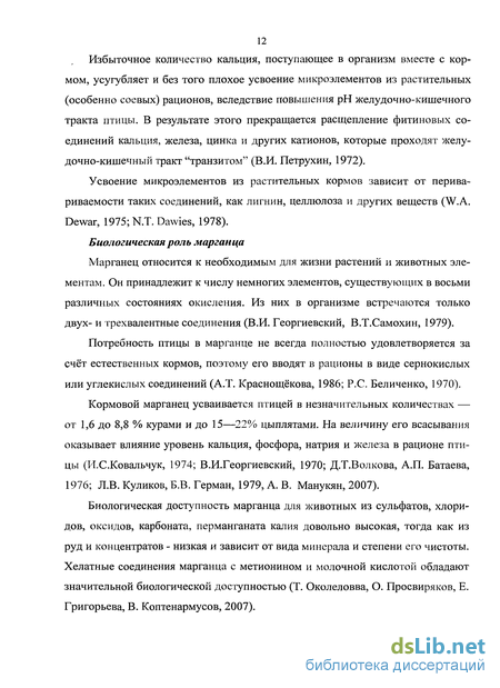 Известно, что корма служат основным источником микроэлементов для организма птицы. При недостатке или избытке некоторых из них значительно снижается резистентность организма, возникают глубокие расстройства общего обмена веществ, нарушения репродуктивной функции и заболевания, нередко приводящие к гибели птицы. (О.Х. Геворкян, 1971, 1972).