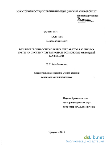 3.1. Влияние противоопухолевых препаратов различных групп на систему глутатиона 45