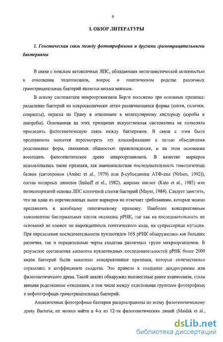 1. Генетическая связь между фототрофными и другими грамотрицательными бактериями 9