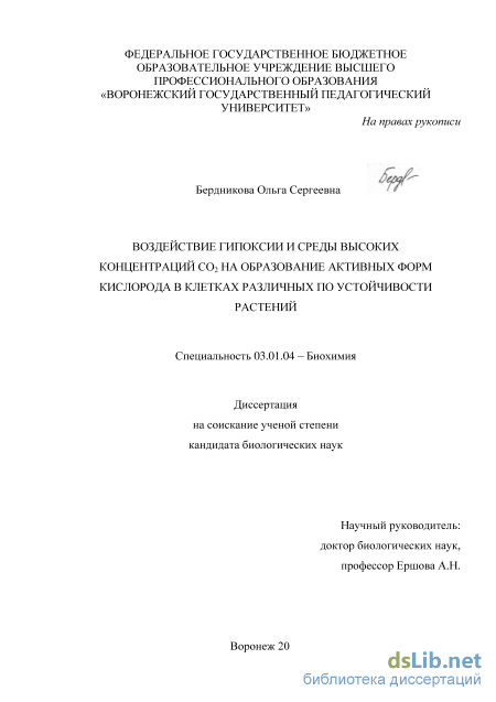 переувлажнением или затоплением почв (Crawford, 2003). Недостаток кислорода может вызывать серьезные метаболические изменения в клетках растений, поэтому изучение механизмов адаптации растений к гипоксии имеет важное научное и практическое значение (Banti et al., 2013). В условиях дефицита кислорода в клетках растений усиливаются процессы перекисного окисления липидов (Monk et al., 1987; Ершова, 1996). Повышение интенсивности пероксидации липидов может быть также следствием активации у растений процессов свободнорадикального окисления, связанных с образованием различных активных форм кислорода (АФК) (Калашников и др., 1994).