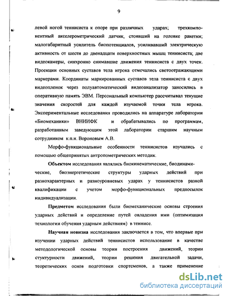 Предметом исследования были биомеханические основы строения ударных действий и определение путей овладения ими (оптимизация технологии обучения ударным действиям) в теннисе.