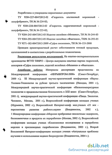 изучения и использования водных биоресурсов» (Владивосток, 2004 г.).