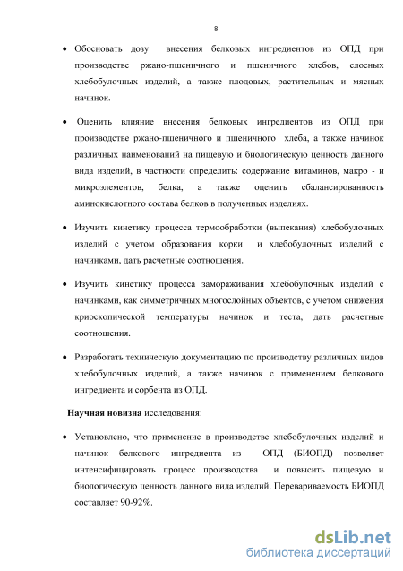 Практическая значимость работы. Разработаны рекомендации по применению белкового ингредиента из ОПД и сорбента микотоксинов из ОПД при производстве хлебобулочных изделий различных наименований, а также плодовых, растительных и мясных начинок для хлебобулочных изделий.