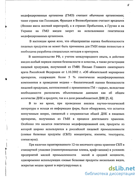 В то же время, анализ научно-технической литературы показывает, что несмотря на еоіпмеримость масштабов производства традиционных и ГМ -культур, остается неизученным вопрос, связанный с сохранностью общей ДНК в пищевых продуктах, произведенных на основе этих культур и с дальнейшей необходимостью маркировать пищевой продукт. Особенно это актуально для сои, белковые продукты которой - СБП (в том числе и полученные из ГМИ) широко используются в российской пищевой промышленности (концентраты, изоляты, текстураты, мука).