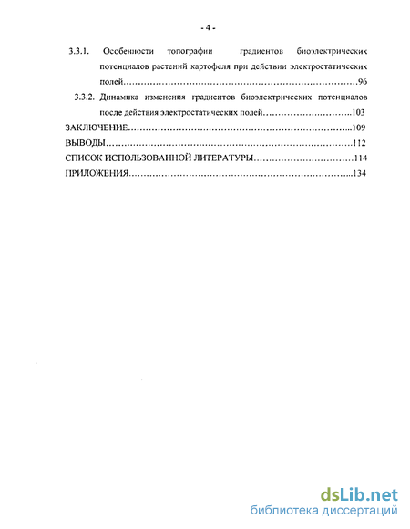 3.3.1. Особенности топографии градиентов биоэлектрических потенциалов растений картофеля при действии электростатических полей 96