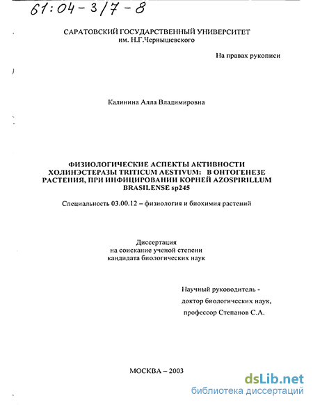 Глава 3. Активность холинэстеразы в онтогенезе пшеницы 50