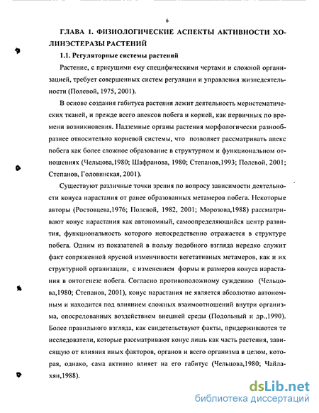Глава 1. Физиологические аспекты активности холинэстеразы растений 6