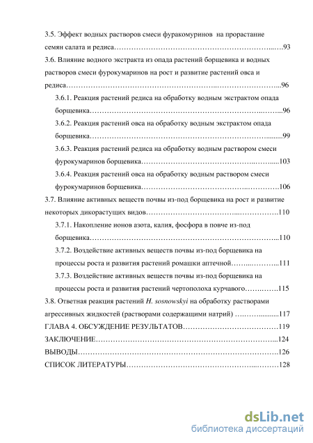 3.7. Влияние активных веществ почвы из-под борщевика на рост и развитие некоторых дикорастущих видов 110