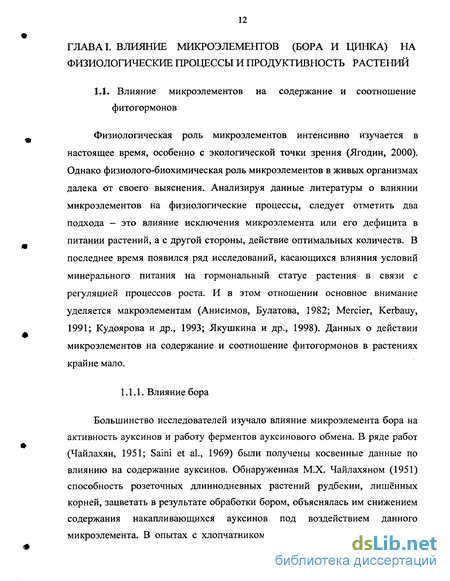 1. Влияние микроэлементов (бора и цинка) на физиологические процессы и продуктивность растений 12