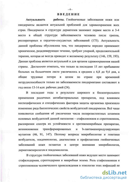 В последние годы в результате широкого и бесконтрольного применения различных антибактериальных препаратов, под влиянием неспецифических и специфических факторов защиты организма произошло изменение ряда биологических свойств возбудителей пиодермитов. Всё чаще появляются сообщения об увеличении числа полирезистентных штаммов основных возбудителей данной патологии - стафилококков и стрептококков, расширении спектра их устойчивости к противомикробным препаратам, возникновении трансформированных и Ь-лактамазопродуцирующих мутантов (Martinez М.А. et al., 2004; Campo-Esquisabel А.В., 2005). Поэтому вопросы микробиологии и генетики возбудителя, эпидемиологии, диагностики и профилактики гнойничковых заболеваний кожи остаются в центре внимания дерматовенерологов, микробиологов и эпидемиологов.