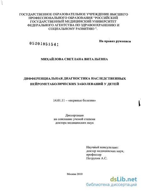 Наследственные нарушения метаболизма или наследственные болезни обмена веществ (НБО) — один из обширных классов наследственных моногенных заболеваний. Подавляющее большинство этих заболеваний обусловлено мутациями в генах, кодирующих ферменты, но также в этот класс включены некоторые дефекты транспортных и сигнальных белков (Aicardi J., 1998; Menkes Н., 2000; Темин П.А., 2001; J.T.R. Clarke, 2004; Краснопольская К.Д., 2005; Jean-Marie Saudubray, 2006). С момента открытия первых форм НБО прошло уже более 100 лет. На сегодняшний день к этому классу относят около 500 заболеваний, и их число постоянно возрастает в связи с появлением новых высокотехнологичных методов диагностики. Отдельные нозологические формы НБО встречаются крайне редко, но их суммарная частота в популяции достаточно высока и составляет 1 на 3000 живых новорожденных (Краснопольская К.Д., 2005; Новиков П.В., 2006; Jean-Marie Saudubray, 2006). До сих пор распространенность НБО в популяциях недооценивается, однако врачи любой специальности могут столкнуться с необходимостью дифференциальной диагностики этих заболеваний. Среди всех НБО существенную долю составляют заболевания, протекающие с поражением нервной системы, которые и объединяют в группу нейрометаболических заболеваний (НМЗ) (Aicardi J., 1998). Диагностика данной группы заболеваний достаточно сложна в связи с редкой встречаемостью отдельных нозологических форм, выраженным клиническим разнообразием и генетическим полиморфизмом. Клиническая диагностика затрудняется неспецифичностью симптомов на ранних стадиях заболевания и наличием атипичных форм (Lyon G., 1996; Hoffmann G.F., 1998; Феничел Джеральд М., 2004; Краснопольская К.Д., 2005; Новиков П.В., 2006). До середины двадцатого века НБО и другие наследственные заболевания относились к числу неизлечимых; таким больным могла быть предложена только симптоматическая терапия и семье оказана медико-генетическая помощь. На сегодняшний момент для ряда заболеваний из