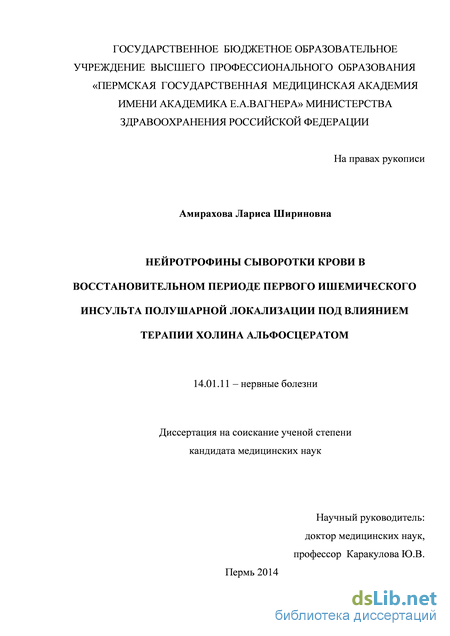 - Количественное содержание нейротрофических факторов в сыворотке крови больных в восстановительном периоде перенесенного ишемического инсульта до лечения