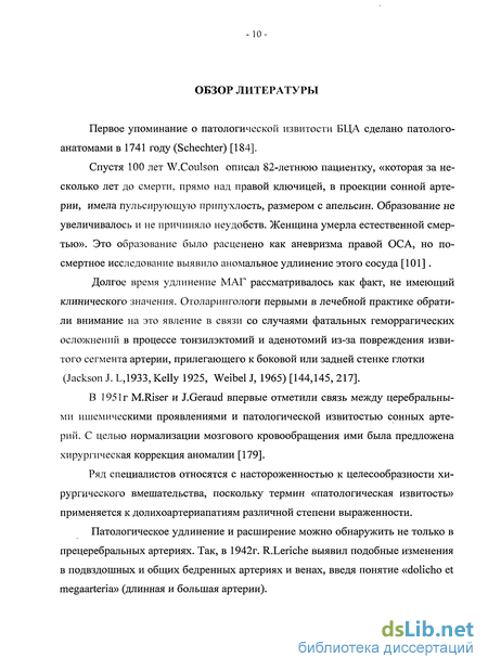 Первое упоминание о патологической извитости БЦА сделано патологоанатомами в 1741 году (Schechter) [184].