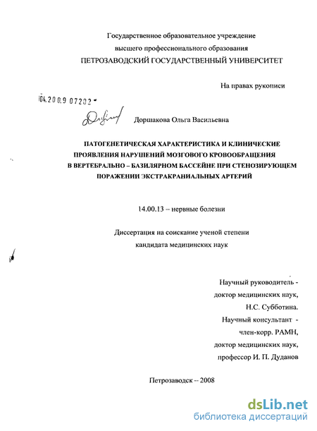 атеросклеротического стенозирующего поражения магистральных сосудов каротидного и вертебрально-базилярного бассейнов и лечении больных 1-4 поликлиник, ангионеврологического отделения Больницы скорой медицинской помощи г. Петрозаводска, отделенческой больницы г. Петрозаводска. Основные положения диссертации используются в лекциях и практических занятиях на кафедрах неврологии и физиологии человека и животных Петрозаводского государственного университета.