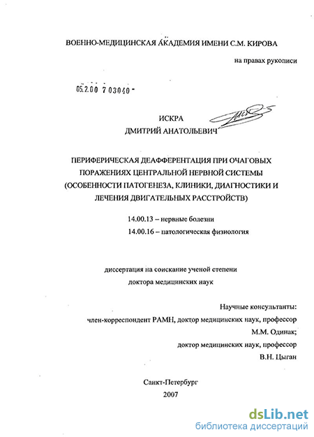 Поэтому изучение роли и места типового патологического процесса — периферической деафферентации в генезе центральных двигательных нарушений различной нозологии в клинических и экспериментальных исследованиях представляется важной и актуальной научной проблемой современной неврологии.