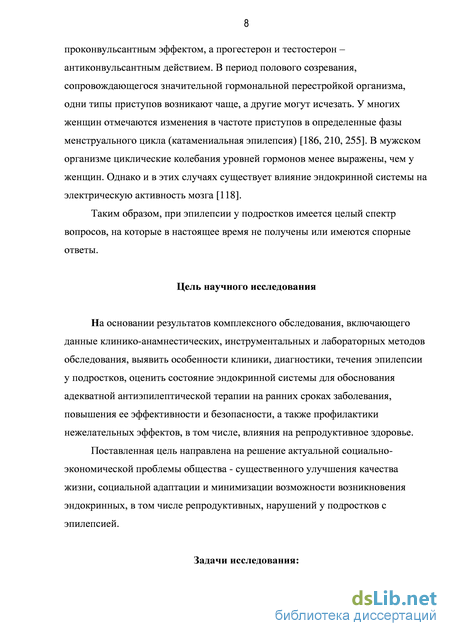 Цель научного исследования - на основании результатов комплексного обследования подростков с эпилепсией, включающего данные клинико-анамнестических, инструментальных и лабораторных методов обследования, выявить особенности клиники, диагностики, течения заболевания и оценить состояние эндокринной системы для обоснования адекватной противоэпилептической терапии на ранних сроках заболевания, повышения ее эффективности и безопасности, а также профилактики нежелательных эффектов, в том числе, влияния на репродуктивное здоровье.