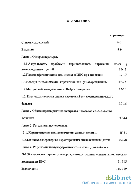 Глава 4. Результаты иммуноферментного анализа уровня белка S-100 в сыворотке крови у новорожденных с перинатальным гипоксическим поражением ЦНС. 91-115